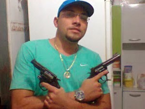 Em uma das imagens o suspeito de 24 anos aparece empunhando duas armas. Na outra, ele aparece com um tablete de maconha. Na prisão foram apreendidos um carregador de pistola 9 milímetros com seis munições intactas, maconha e R$ 800 em dinheiro. O suspeito já responde na Justiça por receptação e posse de droga.