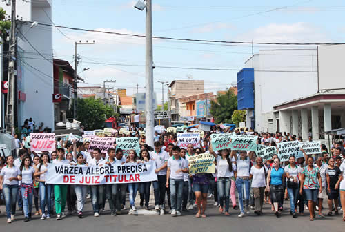 A manifestação, organizada pelos advogados de Várzea Alegre e da região, ganhou o apoio da juventude estudantil, que com cartazes e gritando palavras de ordem, cobraram a presença de um juiz titular.