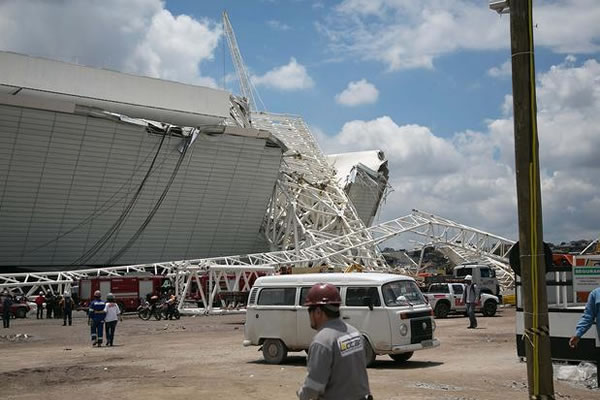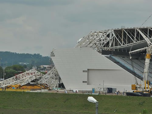 Parte da estrutura da Arena Corinthians desabou na manhã desta quarta-feira. (Foto: Gero/Futura Press)