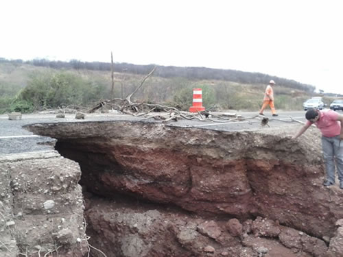 provocou destruição de um bueiro sob o asfalto e corte da Rodovia Padre