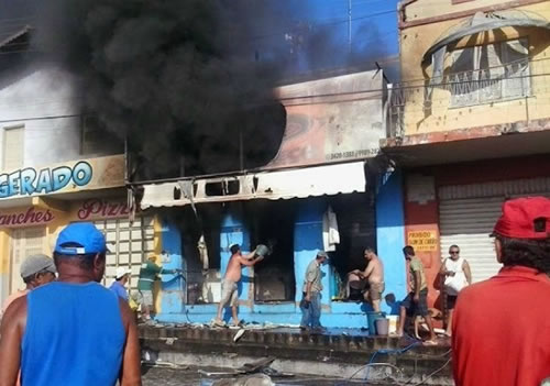 "Duas balconistas afirmaram que havia duas pessoas dentro do comércio. Ele foi fechado pelos bandidos, e os jovens não conseguiram fugir", relata o cabo da Polícia Militar Osmar da Silva. O comércio foi completamente destruído pelas chamas.