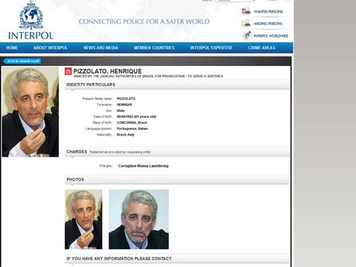 Henrique Pizzolato na lista de procurados internacionais, chamada de
