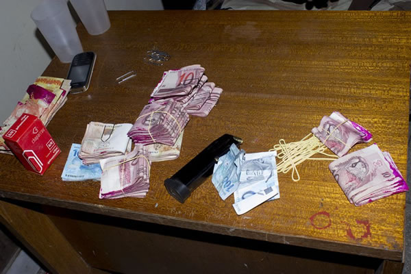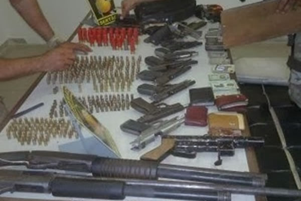 Com os suspeitos a polícia apreendeu uma caminhonete Nissan Frontier de placas PEM-4643, "toucas ninjas", e um verdadeiro arsenal formado por 11 (onze) armas de fogo, entre elas três pistolas calibre .40 (ponto quarenta), três pistolas calibre 380, uma pistola calibre 9 milímetros, duas espingardas calibre doze retrocarga; uma metralhadora de fabricação caseira, um revólvere calibre 38, munições de diversos calibres e mais R$ 98.125,00 (noventa e oito mil e cento e vinte e cinco reais), um cheque no valor de R$ 5.000,00 (Cinco mil reais), além de celulares.