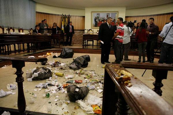 Os quatro rapazes invadiram a Câmara com sacolas de lixo e, ao rasga-las, no meio do plenário disseram que o lixo representava a atuação dos vereadores de Juazeiro. O presidente interino da Casa, vereador Darlan Lobo (PMDB), encerrou a sessão, contrariando muitos dos colegas que queriam a continuação do debate que acontecia.
