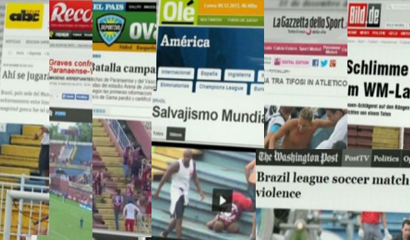 O diário espanhol Marca estampou em sua capa a briga de torcedores, que deixou quatro pessoas feridas com várias lesões. O mais tradicional jornal esportivo da Europa, o francês L´Equipe, disse ser alarmante a ocorrência de brigas no sede do Mundial.