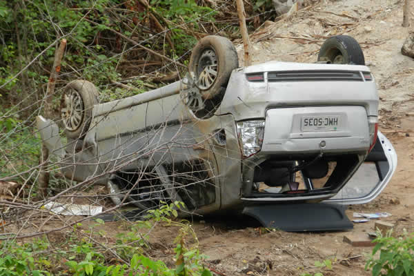 Barbalha-CE: Motorista perde o controle do carro, capota e cai em ribanceira de cinco metros