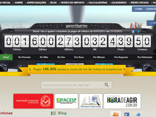 O total de impostos pagos pelos brasileiros também pode ser acompanhado pela internet na página do Impostômetro. Na ferramenta, criada em parceria com o Instituto Brasileiro de Planejamento Tributário (IBPT), é possível acompanhar quanto o país, os estados e os municípios estão arrecadando em impostos.