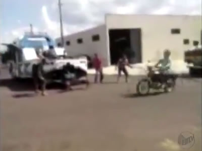caminhão flagraram o momento em que a vítima se chocou com o cabo e caiu