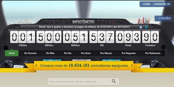 O sistema informa ainda o total de impostos pagos desde janeiro do ano 2000 e faz estimativas de quanto será pago até dezembro deste ano.