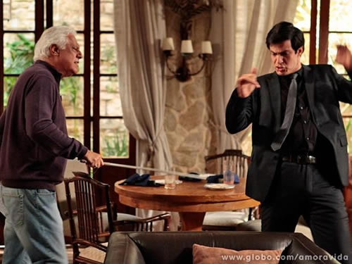 mas nem se interessou em ir visitar César (Antonio Fagundes), na novela Amor à Vida. Só que ele acabou sendo convencido por Jonathan (Thalles Cabral) a ir até lá.