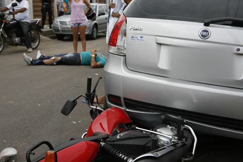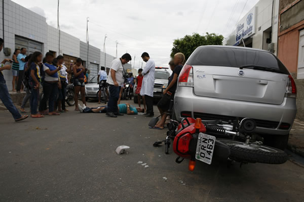 Com o impacto a moto acabou colhendo um veículo que estava estacionado próximo ao local do acidente. (Foto: Cícero Valério/Agência Miséria)