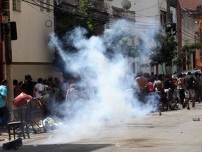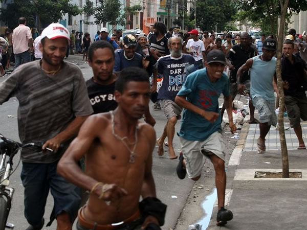 Em nota, a Prefeitura informou que houve uso de bala de borracha e bombas de efeito moral contra "contra uma multidão formada por trabalhadores, agentes públicos de saúde e assistência e pessoas em situação de rua, miséria, exclusão social e grave dependência química".
