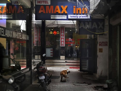 Fachada do hotel em que estava hospedada a turista dinamarquesa vítima de estupro em Nova Déli, na Índia. (Foto: AP)