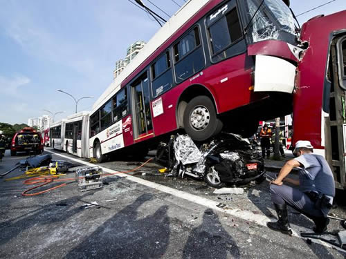 Segundo os bombeiros, os mortos estavam no automóvel, que foi esmagado por um dos ônibus com o acidente. Os oito feridos leves foram levados para as unidades de pronto-socorro Bandeirantes e São Paulo.