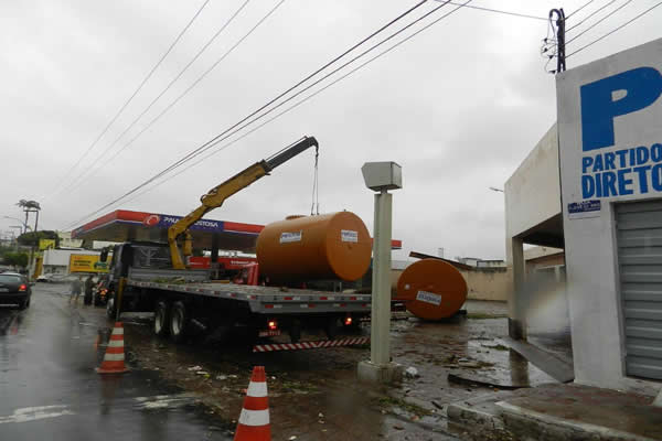 Força da água fez rolar tanques do posto de combustíveis próximo à Igreja Salesiano (Foto: Normando Sóracles/Agência Miséria )