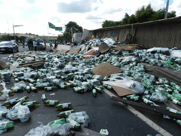 A maior parte do produto em trânsito para Mossoró era formada por garrafas pet, porém tinham muitas de vidro no tamanho 600 ml que quebraram no impacto do tombo na rodovia derramando refrigerante no asfalto. Alguns populares ainda se “agarraram” com garrafas pet e passaram a degustar a Cajuína o que foi interrompido pelos Cabos Paulo Neto e Rodrigues e o Soldado Tomé do Policiamento Ostensivo Geral (POG) impedindo a continuidade do saque à carga.