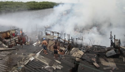 Um incêndio de grandes proporções atingiu pelo menos 50 barracos na