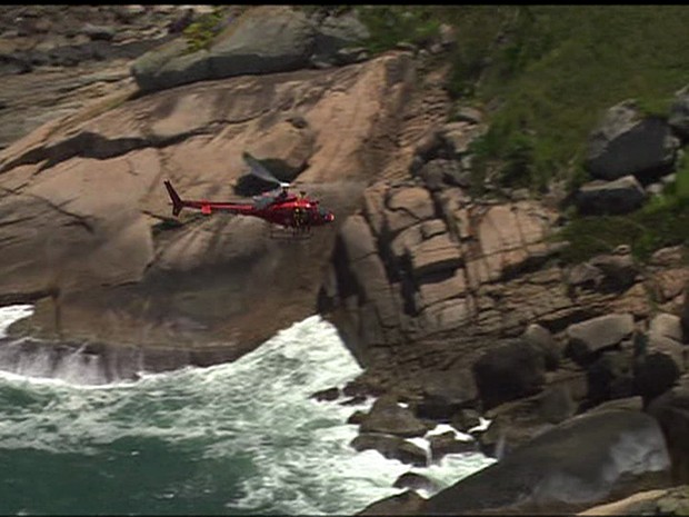Bombeiros fazem buscas na costa da Praia do Perigoso, em Barra de Guaratiba, Zona Oeste (Foto: Reprodução/TV Globo)