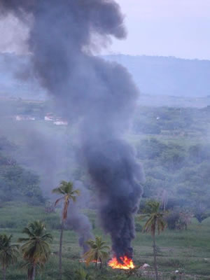 Uma queima de pneus até agora de autoria desconhecida vem provocando
