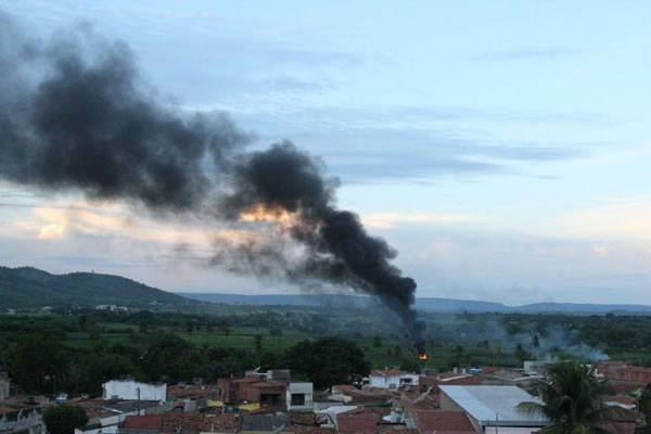 aeronaves na cidade de Juazeiro do Norte. A fumaça preta sobe muito alto