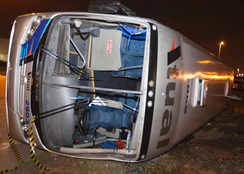Um ônibus tombou e deixou 11 feridos na noite desta segunda-feira (3),