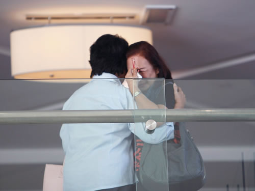 desaparecido desde o sábado (8) choram em hotel em Putrajaya, Malásia.