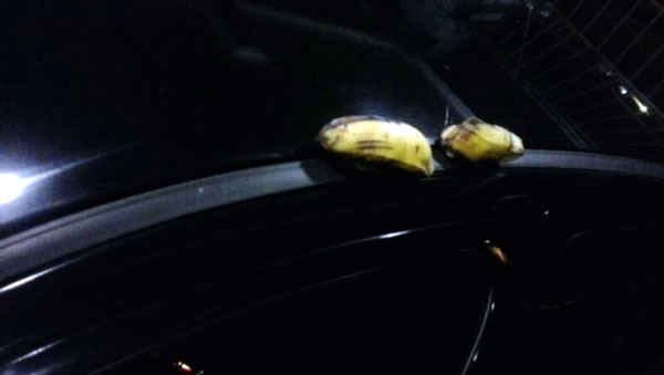 “Quando me deparei com meu veículo com as portas amassadas e bananas por cima… banana no cano de descarga, eu fiquei muito decepcionado por ser tratado dessa forma, já que vivemos numa cidade relativamente educada e evoluída. Eu pensei no meu filho. Pensei: ‘Eu vou dar um beijo no meu filho’ e dizer ‘cara, para ti isso não vai acontecer porque isso é muito ruim, é muito ruim’", disse, chorando.