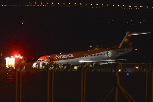 da Avianca aterrissa de barriga no Aeroporto Internacional de Brasília.