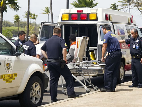 levado a ambulência no aeroporto de Kahului, em Maui. (Foto: AP