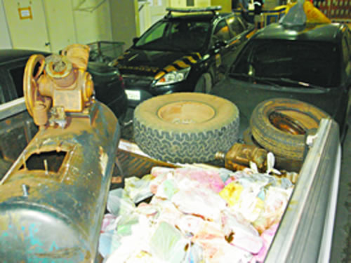 A cocaína estava escondida dentro de um compressor, que era conduzida na caçamba de uma caminhonete Ford F-250. Além dos 103 ´tijolos´ de pasta base, os federais apreenderam dois veículos, uma máquina de contar dinheiro, duas balanças de precisão e ligas de borracha.