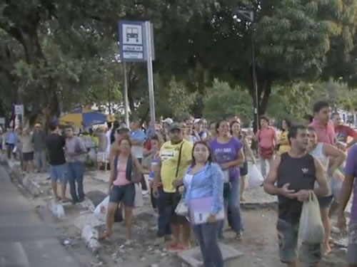 Parada de ônibus ficaram lotadas com a redução da circulação de ônibus (Foto: TV Verdes Mares/Reprodução)