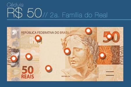 A ferramenta fornece informações sobre os elementos de segurança do dinheiro brasileiro. O objetivo é facilitar o reconhecimento das cédulas do real. O sistema está disponível em português, inglês e espanhol.