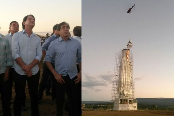 Com presença do governador Cid Gomes, estátua de Nossa Senhora de Fátima foi coroada (Foto: Repórter Miséria/WhatsApp)
