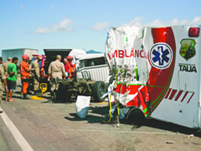 Uma colisão frontal entre uma ambulância e um caminhão deixou os condutores dos dois veículos mortos. Um ônibus da viação Princesa dos Inhamuns, que vinha logo atrás, também se envolveu no sinistro.