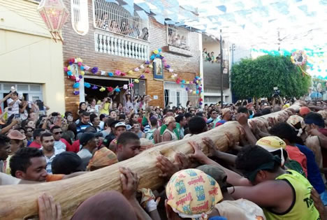 Um dos mais aguardados momentos da festa de Santo Antônio, em Barbalha, acaba de acontecer. Carregando por homens e acompanhado por centenas de fiéis devotos, o Pau da Bandeira chegou ao Largo da Igreja do Rosário.
