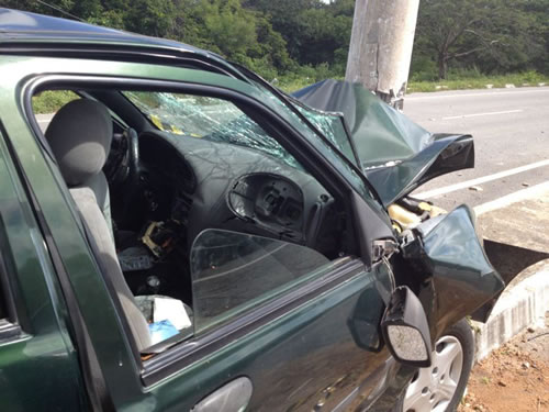 veículo se chocou contra um poste no canteiro central por volta das 7h.