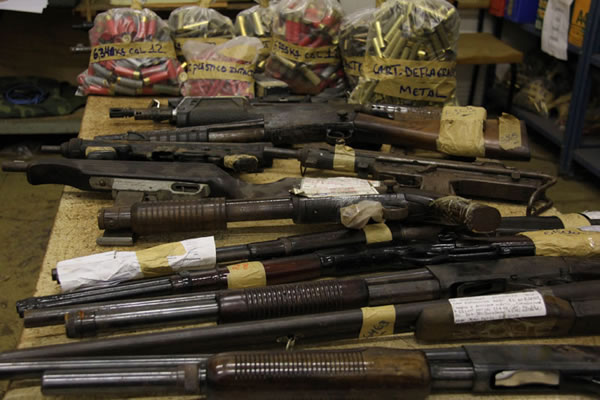 Rifles, fuzis, metralhadoras, revólveres e pistolas são recolhidos e