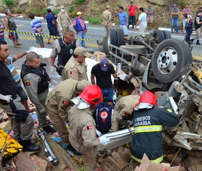 Um acidente de trânsito por volta das cinco horas da madrugada desta quinta-feira numa rodovia estadual da Paraíba deixou o saldo de um morto e dois feridos todos residentes em Juazeiro do Norte. O caminhão tipo baú de placas NUW-3318, inscrição de Crato, capotou na PB-400 numa região de serra entre os municípios de São José de Piranhas e Monte Horebe no sertão paraibano. No local, morreu Francisco Sales, de 21 anos, que era apelidado por "Tassinho" e residia no Alto das Timbaúbas em Juazeiro.