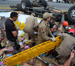 Também foi retirado das ferragens o ajudante Rael Santana Vieira, de 20 anos, que reside na Rua Santa Isabel (Pirajá) em Juazeiro e era primo da vítima fatal. Os dois foram socorridos para o Hospital Regional de Cajazeiras (HRC) por ambulâncias do SAMU, mas estão conscientes apesar dos muitos ferimentos. Rael já foi transferido para o Hospital Regional de Juazeiro. Pelo menos até as 15 horas desta quinta-feira o rabecão do IML de Patos ainda não tinha comparecido ao local para recolher o corpo de Tassinho, a fim de necropsiar. Familiares dele já estão na Paraíba para cuidar do traslado do mesmo. Provavelmente, o motorista do caminhão sobrou em uma curva e muitos populares aproveitaram para recolher os alimentos que eram transportados no baú.