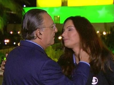 A Globo se descuidou na noite da última quarta-feira (2) e deixou aberto no satélite seu sinal ao vivo em Fortaleza, onde a seleção brasileira estava concentrada para jogar contra a Colômbia. Alguns telespectadores puderam ver os bastidores do Jornal Nacional e o entrosamento de Galvão Bueno e Patrícia Poeta, que se cumprimentaram com beijo antes da transmissão. O sinal também "entregou" a repórter Janaína Xavier, do canal pago Sportv, tomando uma bebida enquanto esperava para entrar ao vivo.Galvão Bueno e Patrícia Poeta apresentaram o Jornal Nacional no hotel onde a seleção brasileira estava hospedada. Quando não estavam no ar, os dois aproveitavam para retocar a maquiagem, ajeitar a roupa e fazer exercícios vocais, como a famosa bufada de Poeta que vazou no telejornal no início de junho.