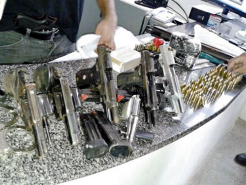 Junto com a quadrilha foram encontrados dois revólveres, quatro pistolas, várias munições, 492g de cocaína, R$ 2.415, uma balança de precisão e uma espingarda de pressão.