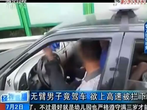 Homem sem braços foi detido ao ser flagrado dirigindo na China. (Foto: Reprodução/LiveLeak/Lake8737)