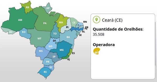 De acordo com dados da Anatel, a Oi detém a maior fatia do mercado de telefones púbicos no Brasil (74,6%), com 657 mil aparelhos instalados em todo o território nacional, com exceção do Estado de São Paulo e alguns municípios de Minas Gerais, Mato Grosso, Mato Grosso do Sul e Goiás. No ceará ainda existem 35.508 telefones públicos em funcionamento.