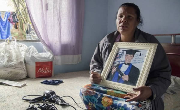 Raquel Francisca com a foto da filha Jéssica, quando ela se formou no ensino médio (Foto: Mazé Mixo/Agência O Globo)