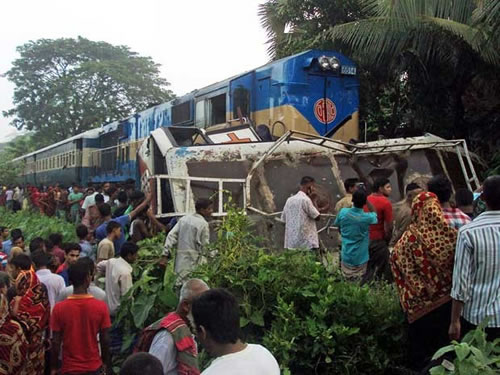 Um trem colidiu com um ônibus em Jhenaidah, a cerca de 150 km de Dhaka,