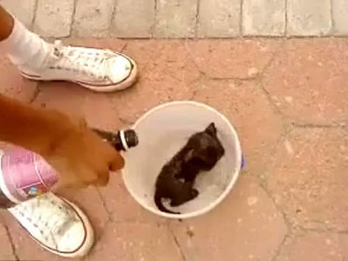 No vídeo, dois homens não identificados colocam o filhote em um recipiente, despejam material inflamável e incendeiam o animal. O vídeo despertou revolta nos usuários da rede social.
