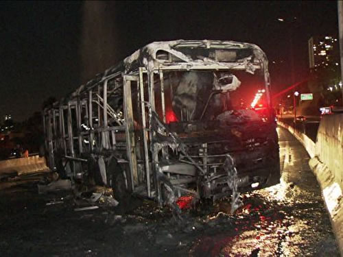 Dois ônibus foram incendiados na noite desta terça-feira (9) na altura do km 15 da rodovia Raposo Tavares, em São Paulo. A pista sentido Cotia ficou totalmente interditada por quase de duas horas e gerou congestionamento de mais de 6 quilômetros.