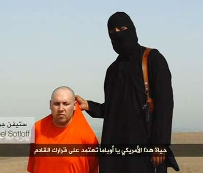O militante mascarado condena os ataques americanos contra o Estado Islâmico e corta a garganta de Sotloff. Depois apresenta um segundo refém, identificado como um britânico e ameaça matá-lo.