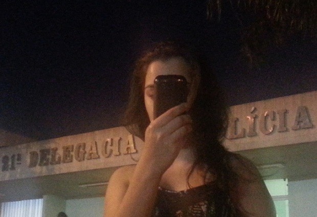 Estudante de Brasília em frente a delegacia; ela teve o nome colocado em lista na web de supostas garotas de programa (Foto: Raquel Morais/G1)