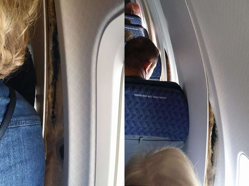 passageiros começou a se soltar em pleno voo. Os danos foram vistos